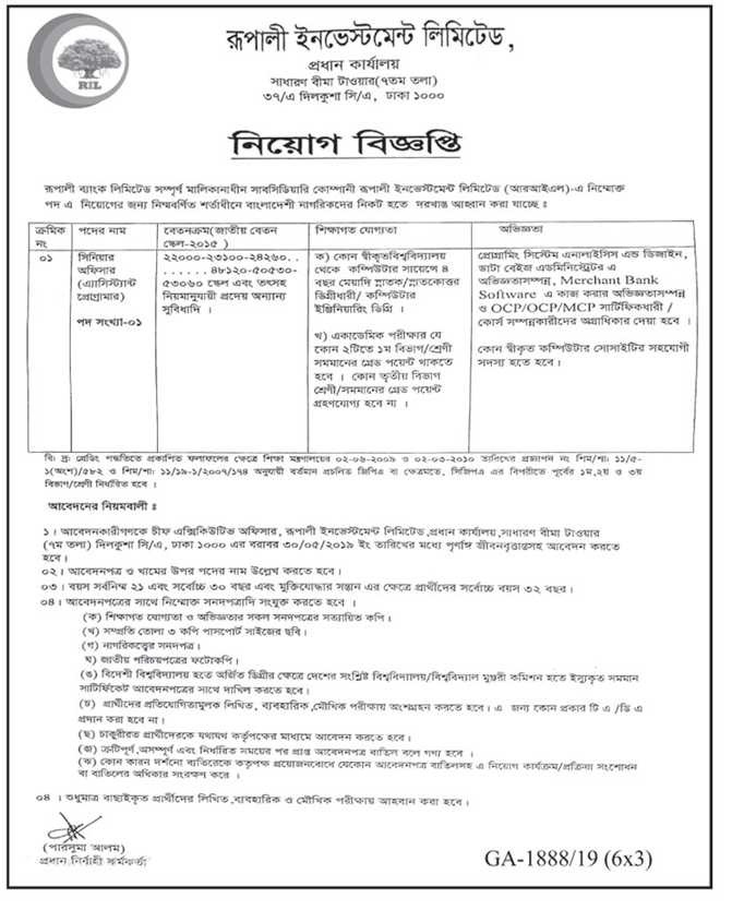 রূপালী ব্যাংক লিমিটেড চাকরির বিজ্ঞপ্তি ২০১৯ RUPALI BANK LIMITED JOB CIRCULAR 2019 May 8, 2019 abdurrahim325 Share this: Share on X (Opens in new window) X Share on Facebook (Opens in new window) Facebook Like Loading... Related Published by abdurrahim325 I am a freelancer . View all posts by abdurrahim325