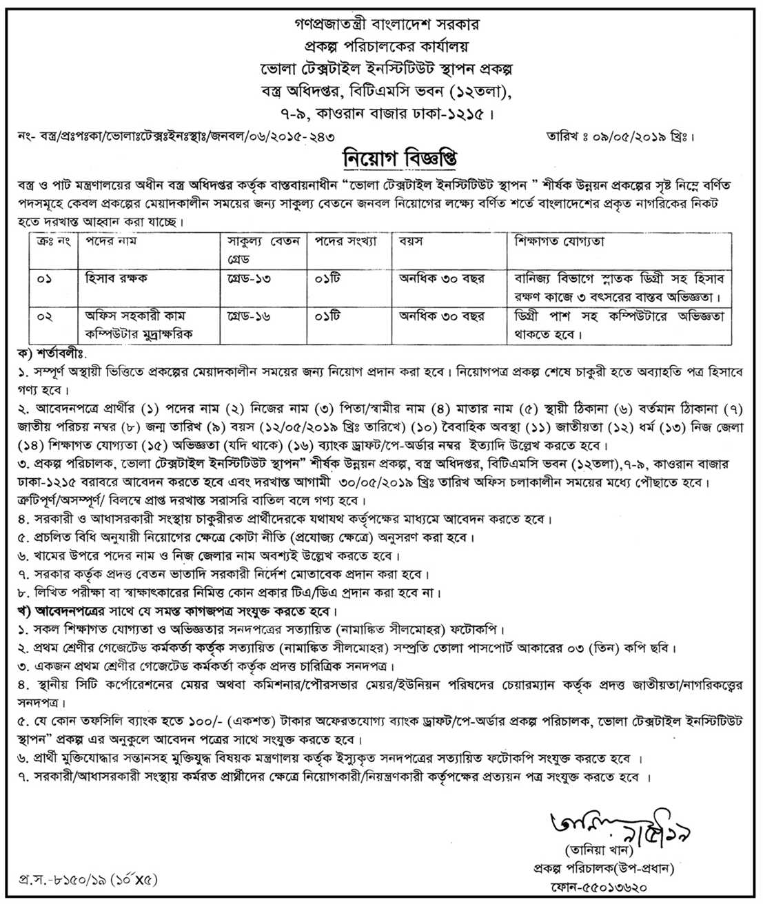 বস্ত্র ও পাট মন্ত্রণালয় নিয়োগ বিজ্ঞপ্তি ২০১৯ Ministry Of Textiles and Jute Job Circular 2019 May 13, 2019 abdurrahim325 Share this: Share on X (Opens in new window) X Share on Facebook (Opens in new window) Facebook Like Loading... Related Published by abdurrahim325 I am a freelancer . View all posts by abdurrahim325