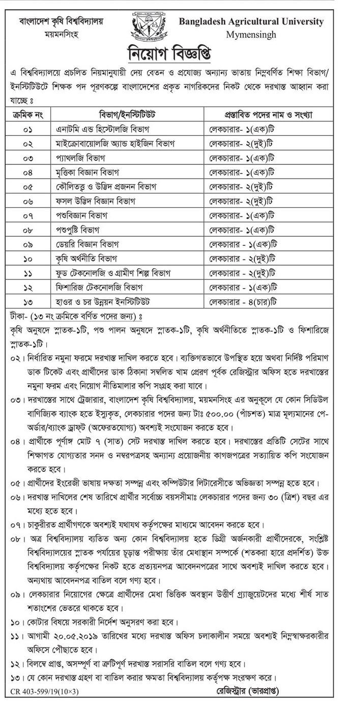 বাংলাদেশ কৃষি বিশ্ববিদ্যালয় নিয়োগ বিজ্ঞপ্তি Bangladesh Agricultural University Job Circular 2019 May 14, 2019 abdurrahim325 Share this: Share on X (Opens in new window) X Share on Facebook (Opens in new window) Facebook Like Loading... Related Published by abdurrahim325 I am a freelancer . View all posts by abdurrahim325